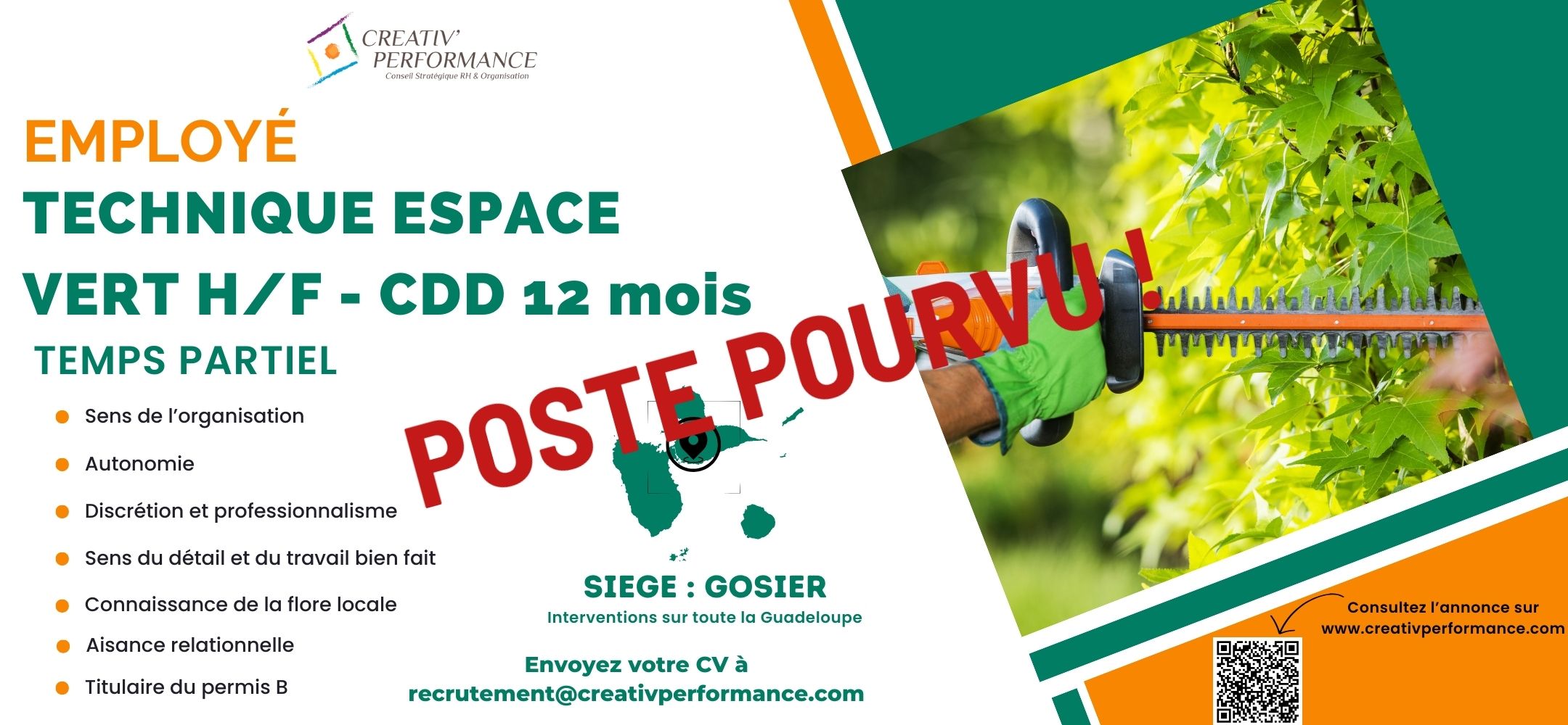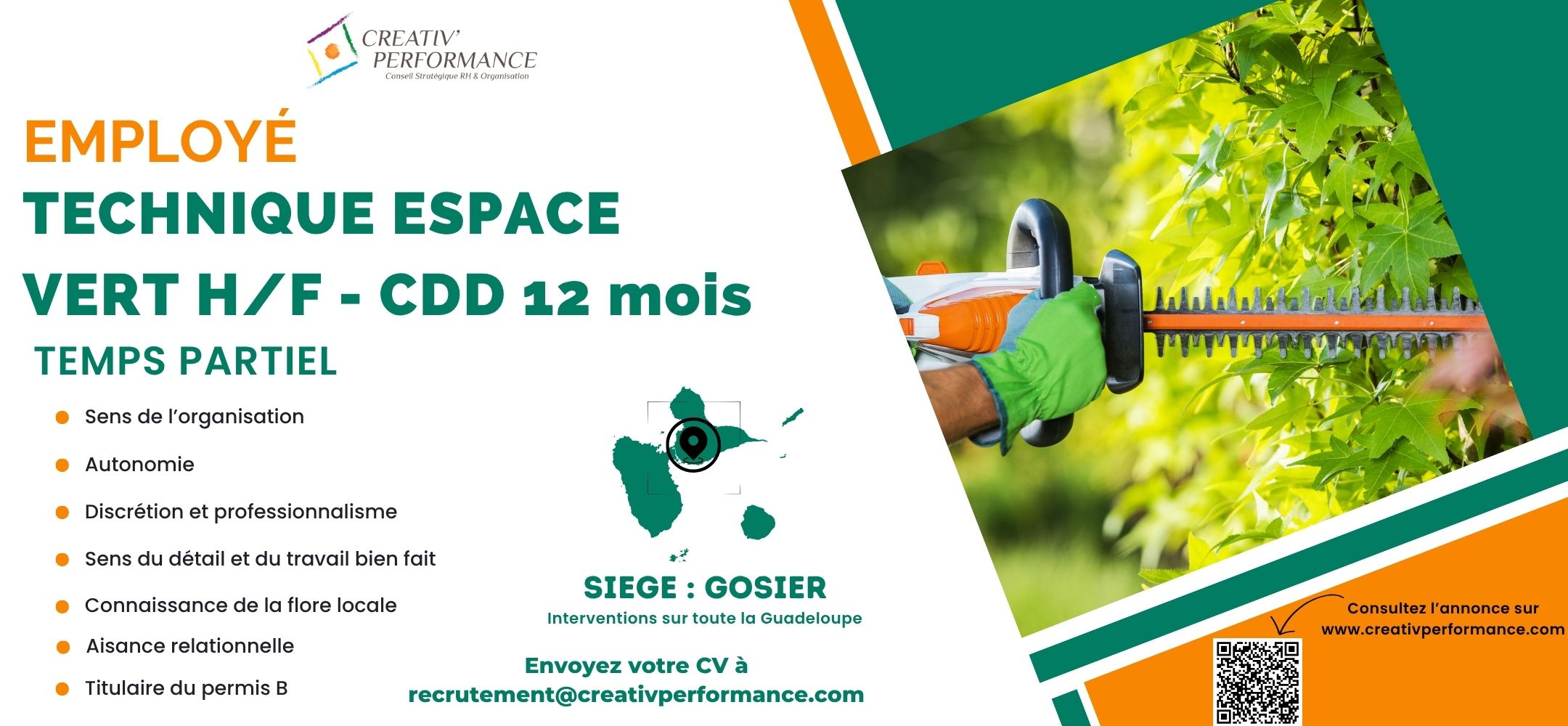 Lieu : Le siège de l’entreprise est au Gosier. Les missions sont réalisées en extérieur sur des chantiers pouvant couvrir toute la Guadeloupe
